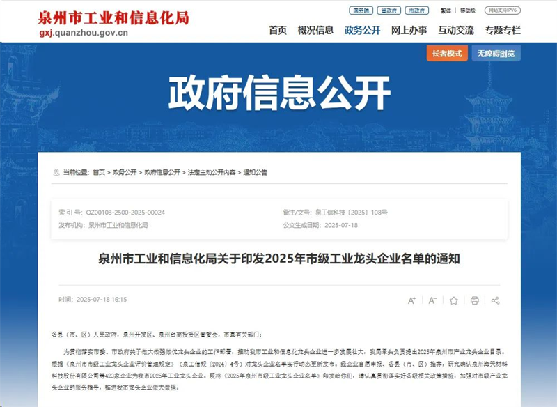 Жақында Куанжоу қалалық индустриялық және ақпараттық технологиялар бюросы «Кванчжоу қалалық өнеркәсіптік жетекші компаниялар тізімін» ресми түрде шығарды. Fujian QGM CO., Ltd, оның жан-жақты көшбасшылығын, ҒЗТКЖ, Жасыл өндіріс және әлемдік нарықты кеңейту, 423 коммуналдық деңгейдегі жетекші өнеркәсіптік кәсіпорындар арасында іріктелді.