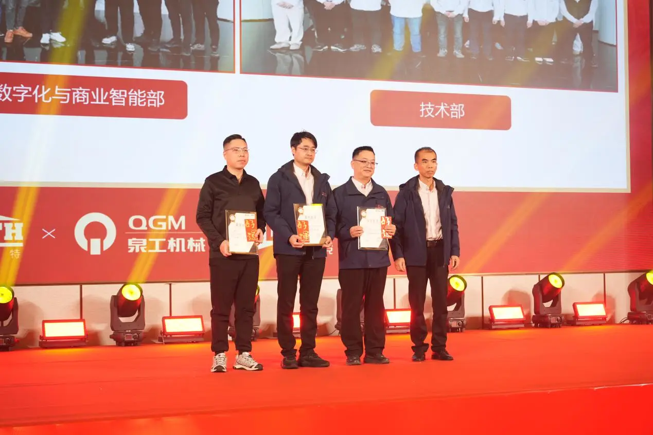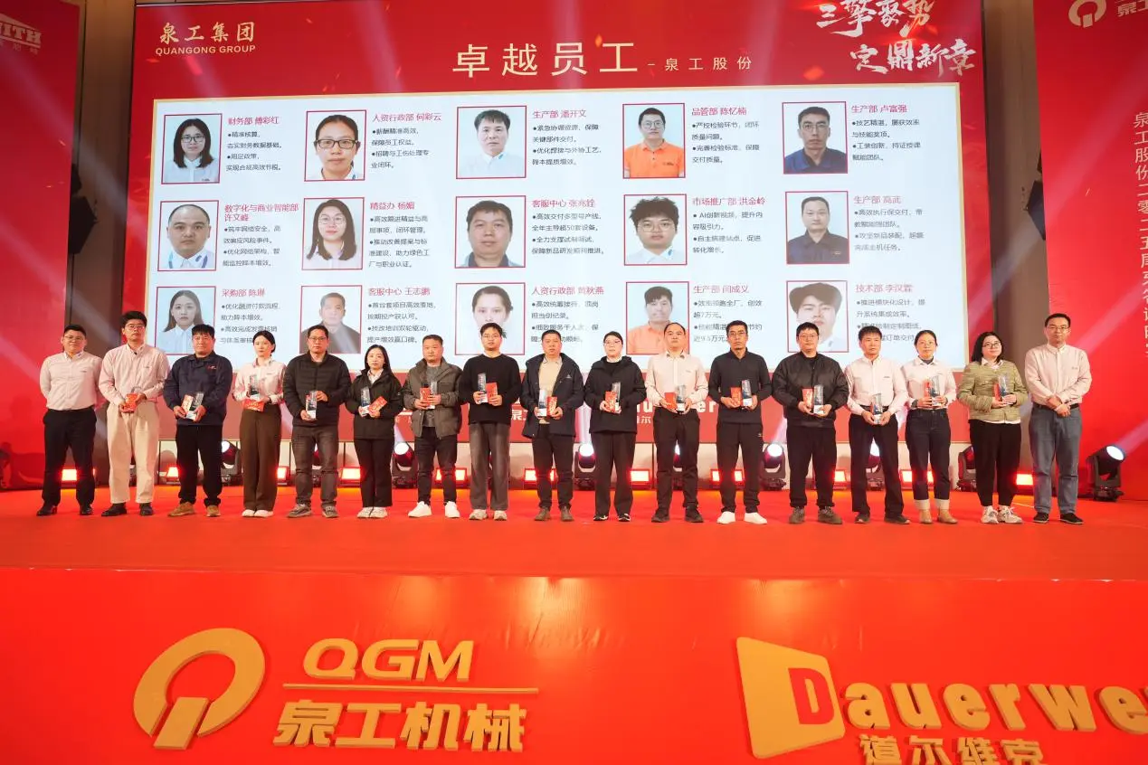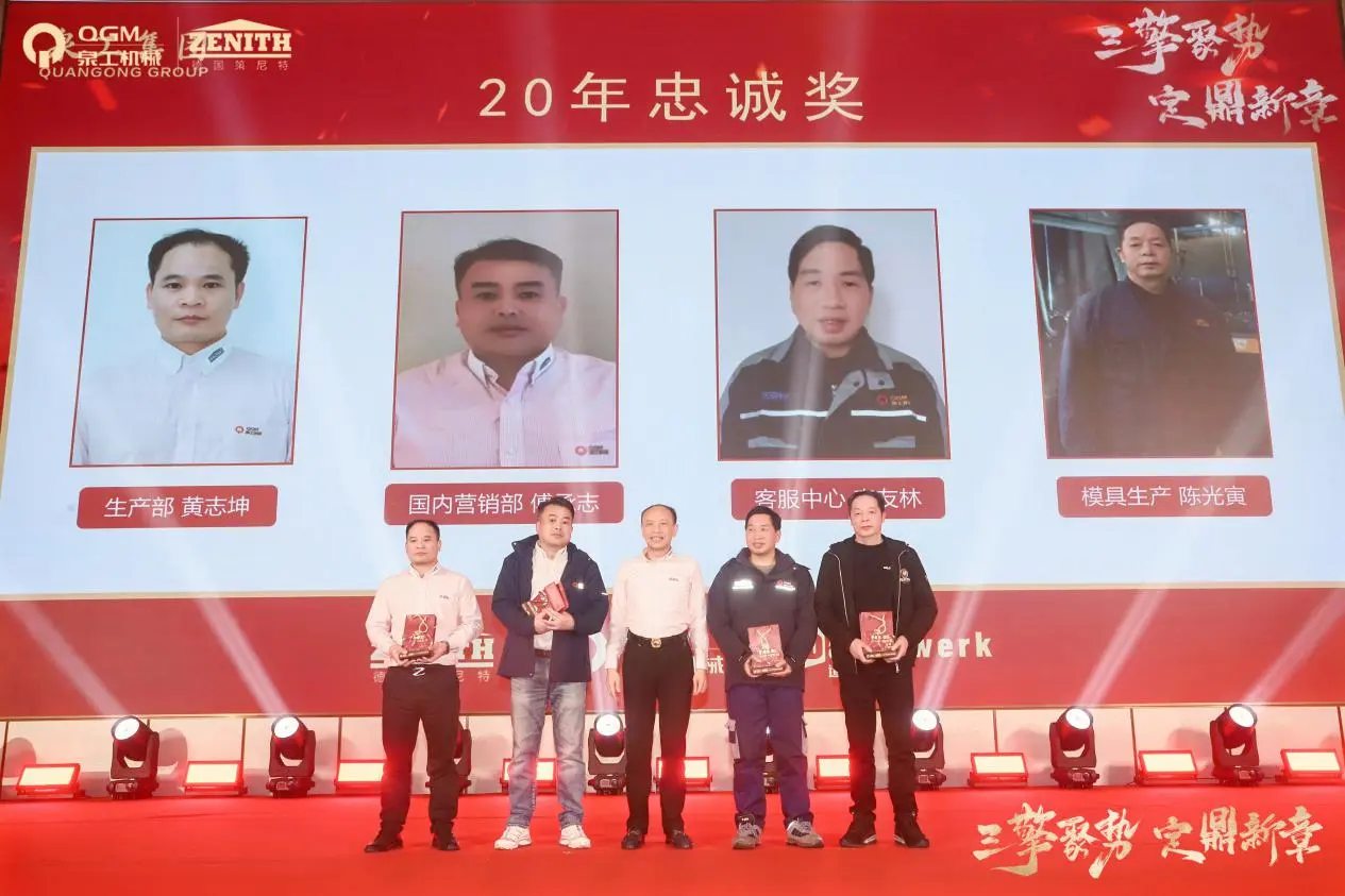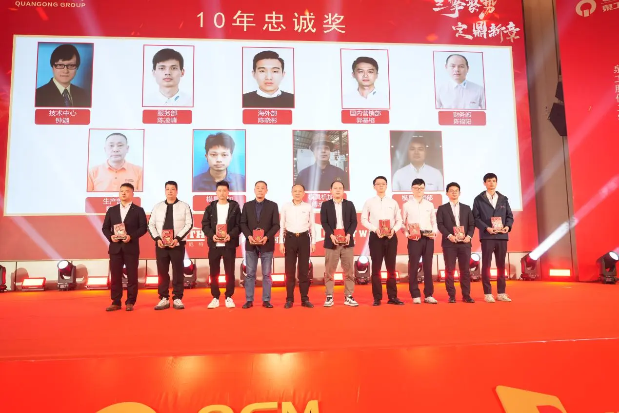 Жыл сайынғы жиналыс барысында 10 жылдық, 20 жылдық және 30 жылдық адалдық марапаттары үшін үлкен марапаттау рәсімі өтті. Сахнаға компаниямен қоян-қолтық араласып, бірге өскен қызметкерлер тобы көтеріліп, Quangong Machinery Co., Ltd. тұрақты дамуының берік негізін және оның тұрақты корпоративтік мәдениетін толық көрсетті.